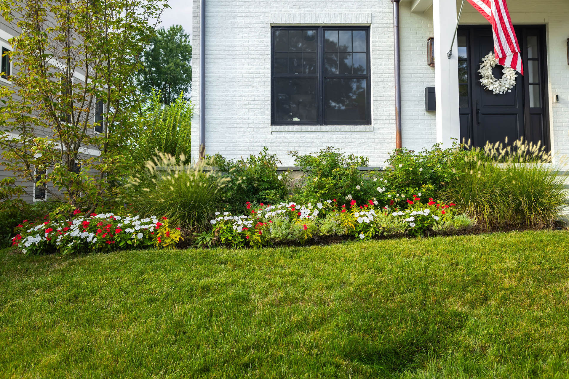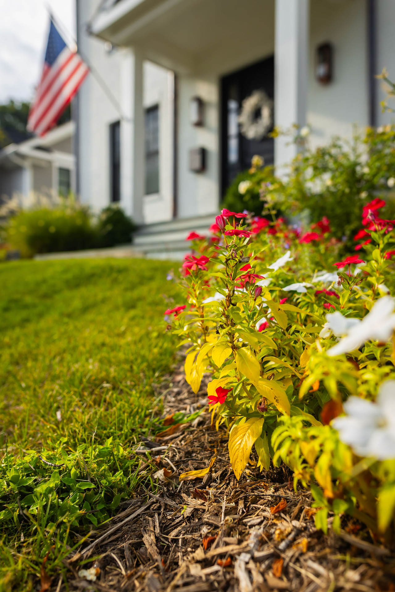 We were thrilled to enhance the curb appeal of this stunning home in collaboration with Brush Arbor. The front yard now offers a balanced mix of clean, structured plantings and natural elements, creating an inviting entrance that complements the property’s classic architecture. Bright flower beds framed by lush green shrubs and accent grasses provide seasonal interest and texture, adding a vibrant touch to the home’s stately exterior.