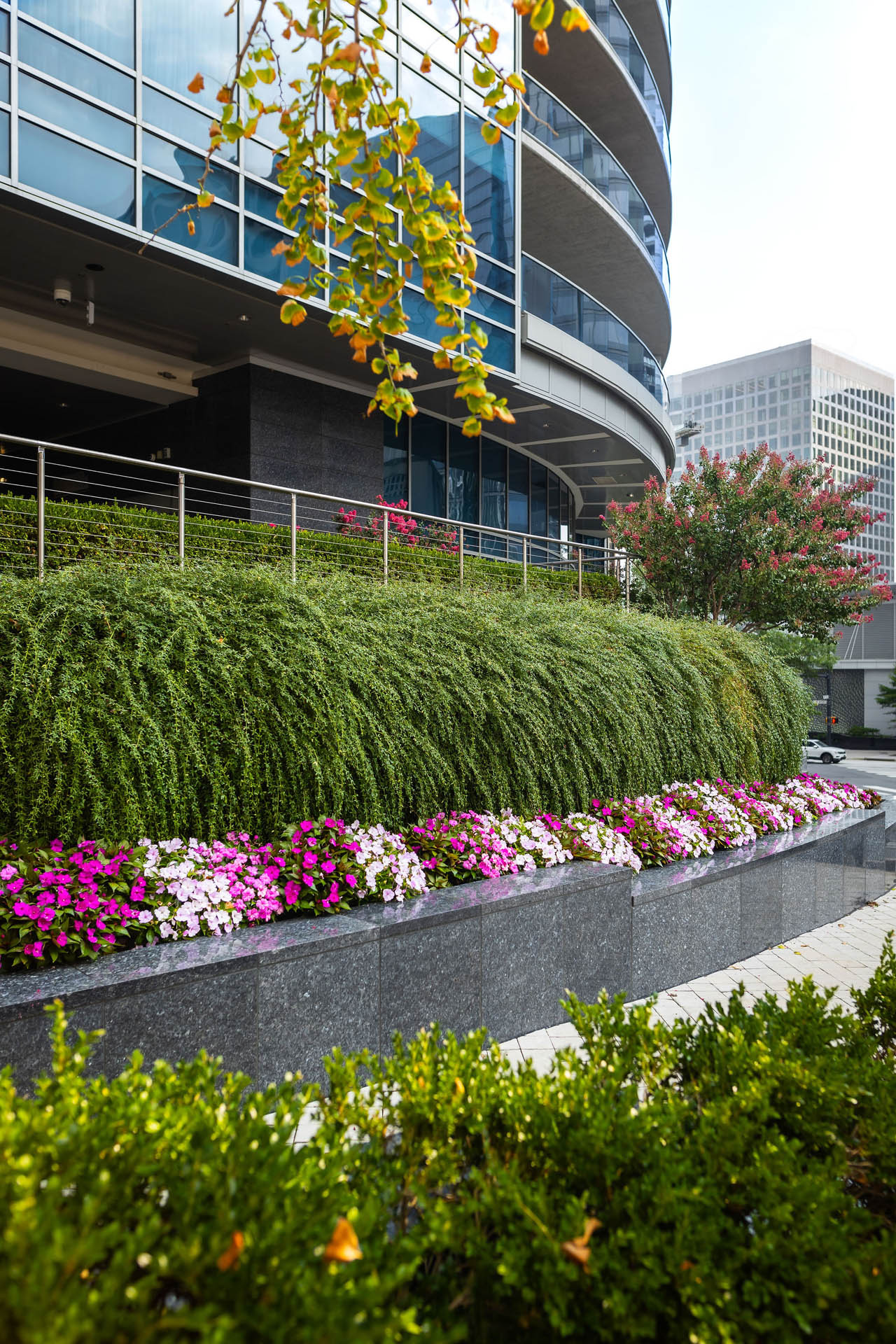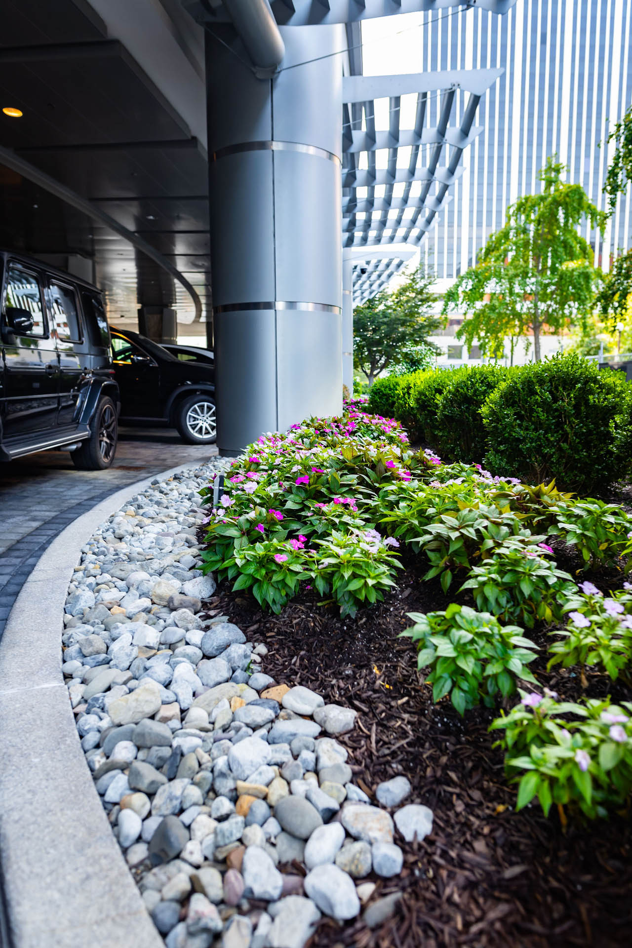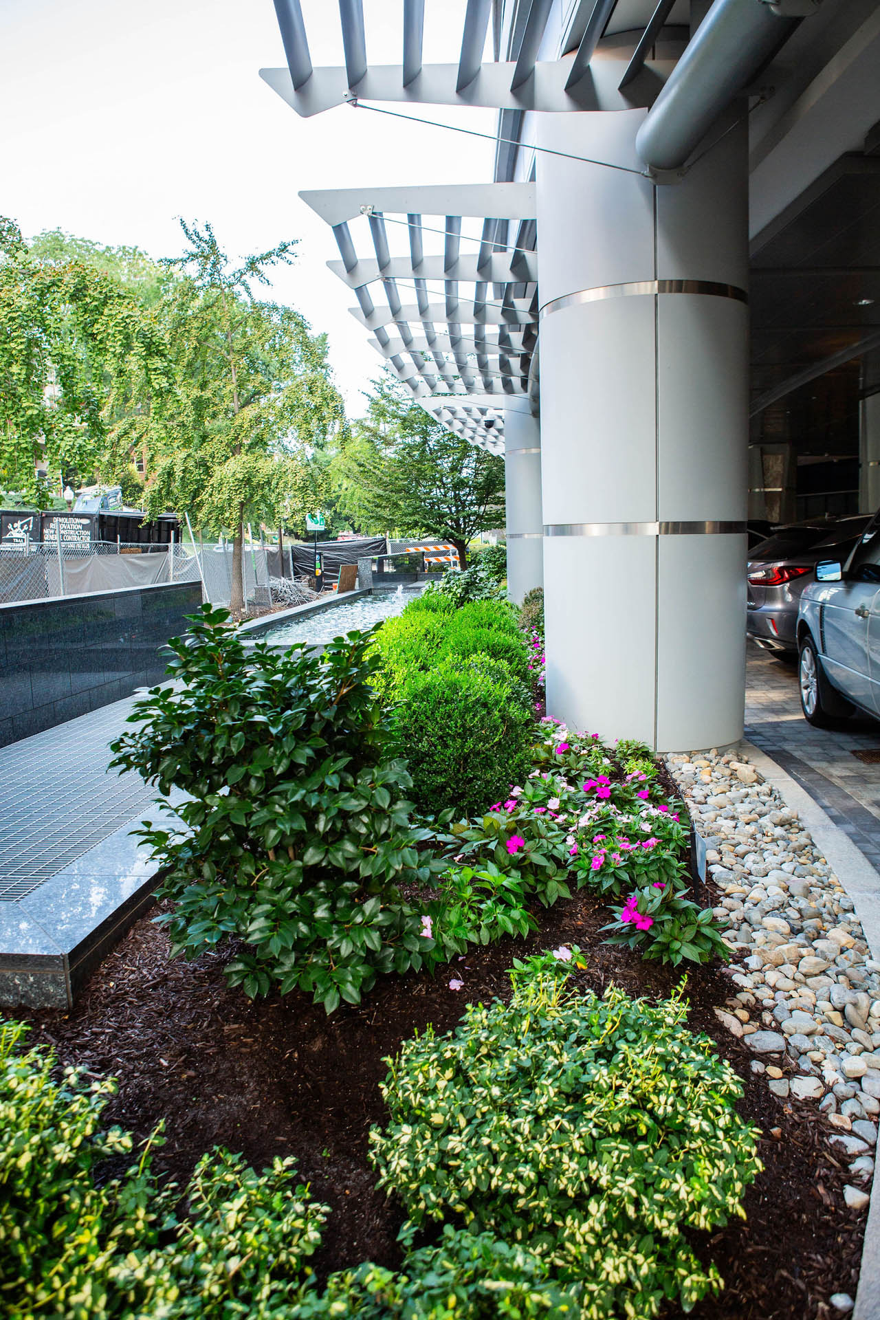 The annual flower installations around the ground floor are a focal point for residents and visitors alike. Our team carefully selects a variety of seasonal blooms, ensuring vibrant color and visual interest that complement the building’s modern architectural aesthetic. This selection not only enhances the property’s curb appeal but also creates an inviting environment around the entrance and common areas.