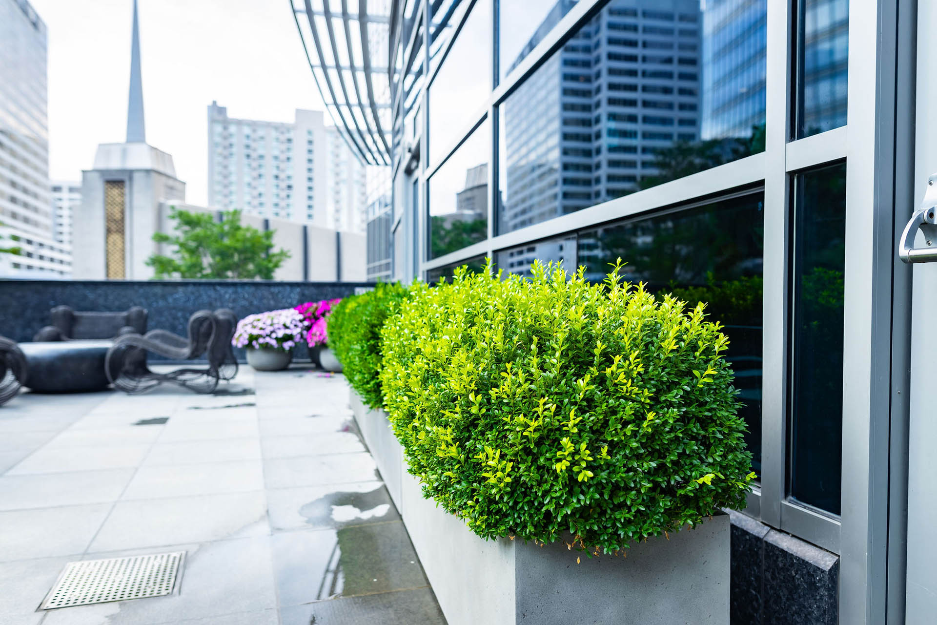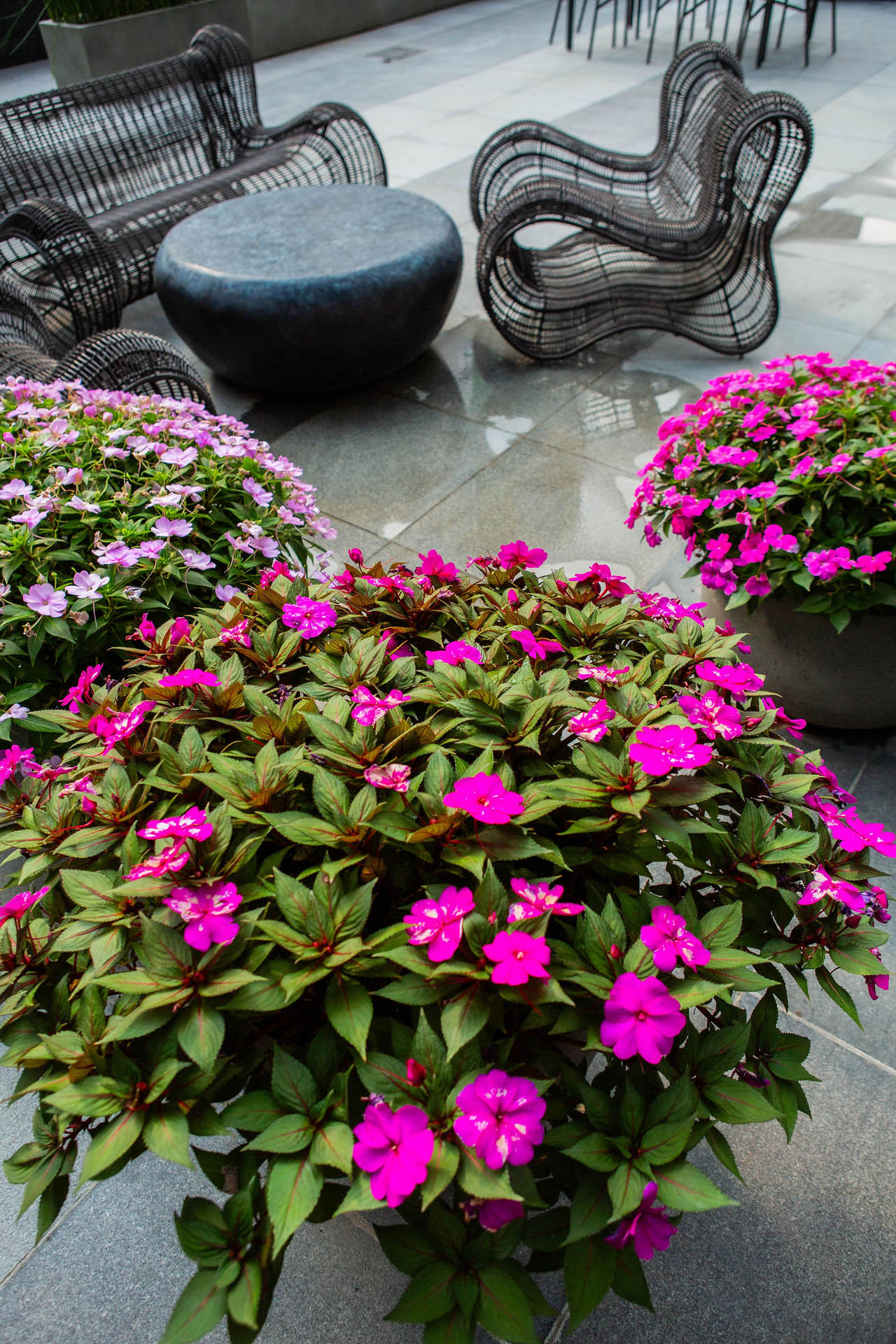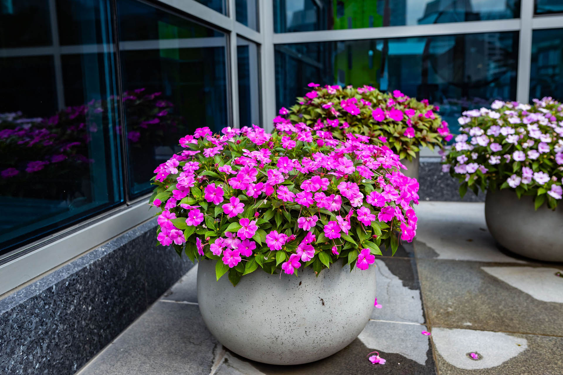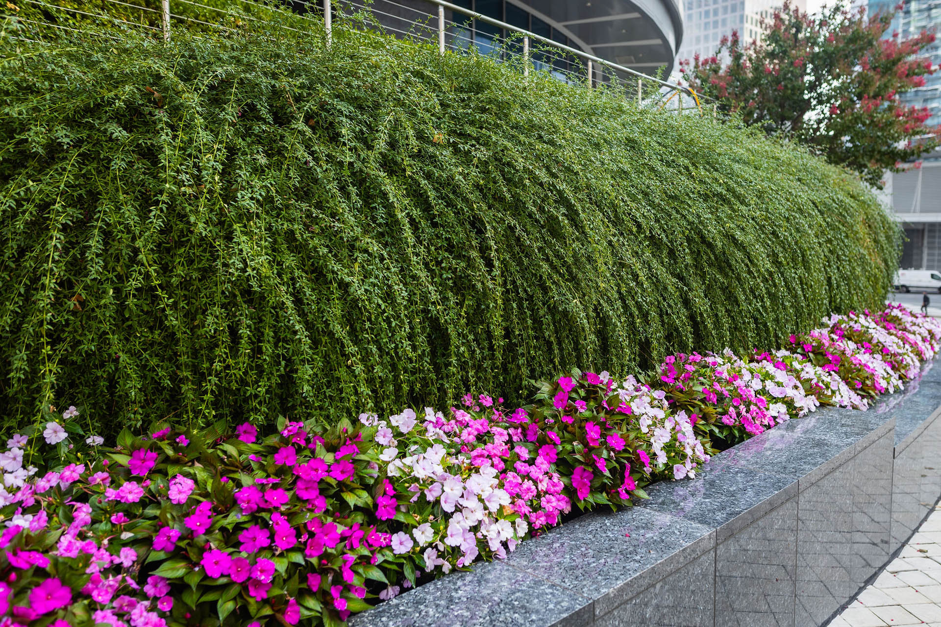 The annual flower installations around the ground floor are a focal point for residents and visitors alike. Our team carefully selects a variety of seasonal blooms, ensuring vibrant color and visual interest that complement the building’s modern architectural aesthetic. This selection not only enhances the property’s curb appeal but also creates an inviting environment around the entrance and common areas.